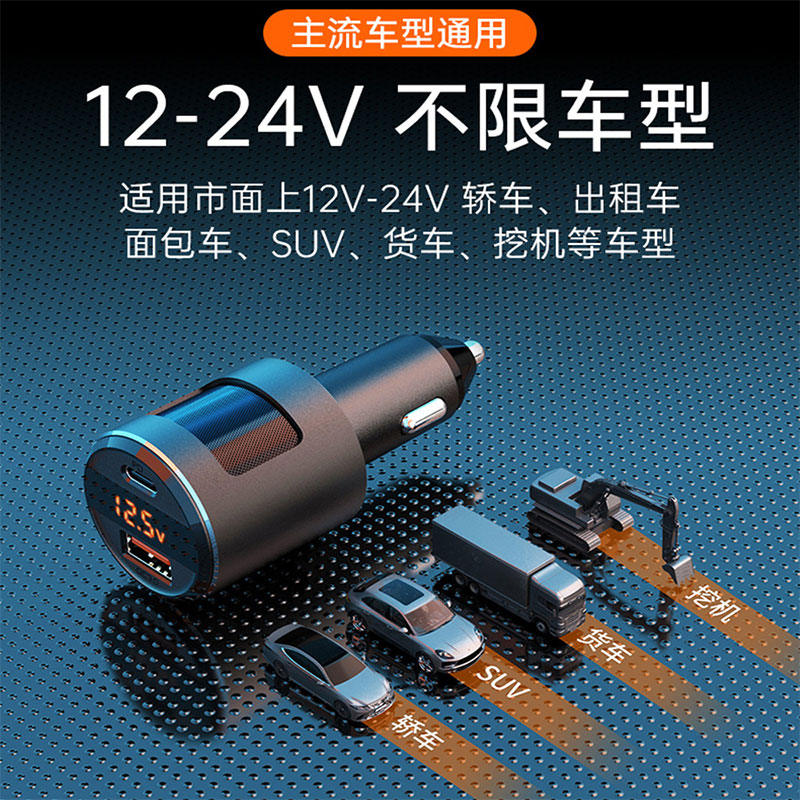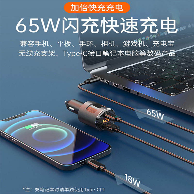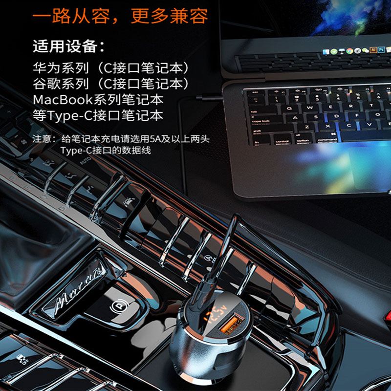 On-board charger One drag two PD cigarette lighter converter plug 65W mobile phone notebook Quick charge USB car charge