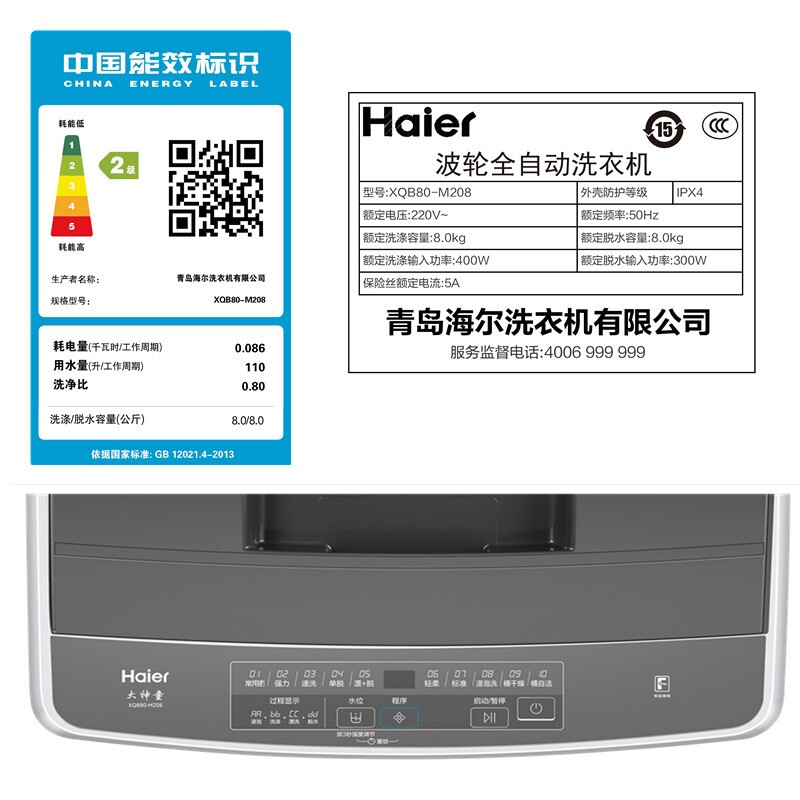 Haier Crown 8 kg fully automatic wave wheel washing machine Great Shentong washing machine special price XQB80-M208