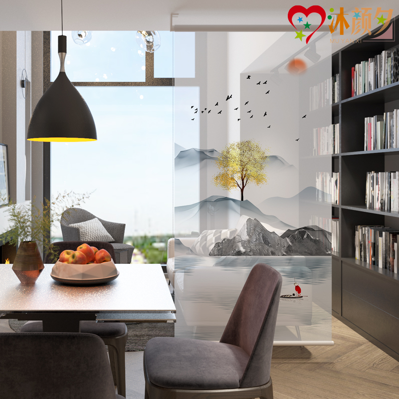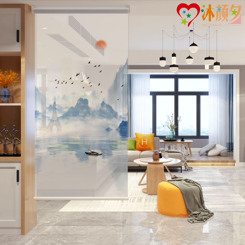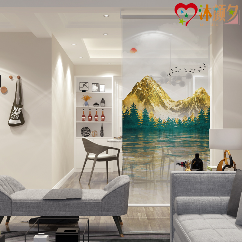 Modern minimalist floor curtain roller shutter New Chinese living room Screen partition window Nordic entry soft curtain hanging curtain screen