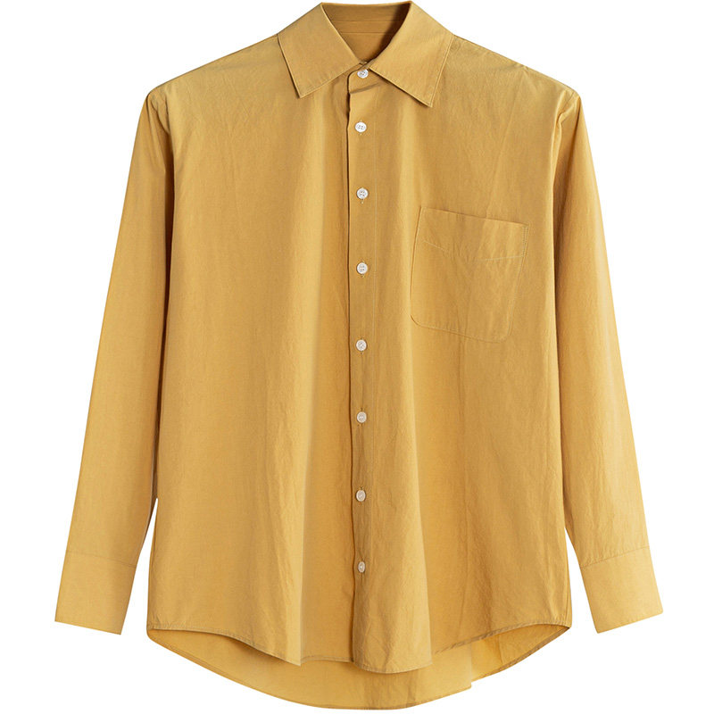 Yiwei Boyfriend style long-sleeved shirt women's paper sense long-staple cotton environmental protection organic ecological fabric BF style solid color shirt