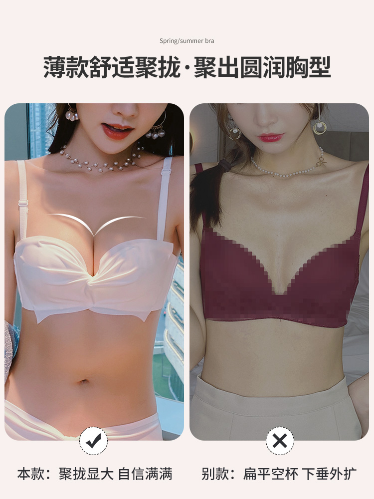 No shoulder strap bra small breasts gathered onto the glossy surface wrapped chest without steel ring trampoline anti-slip lingerie woman