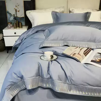 ALEX Nordic style 120 long-staple cotton satin cotton four-piece set of light luxury embroidery quilt cover cotton bedding