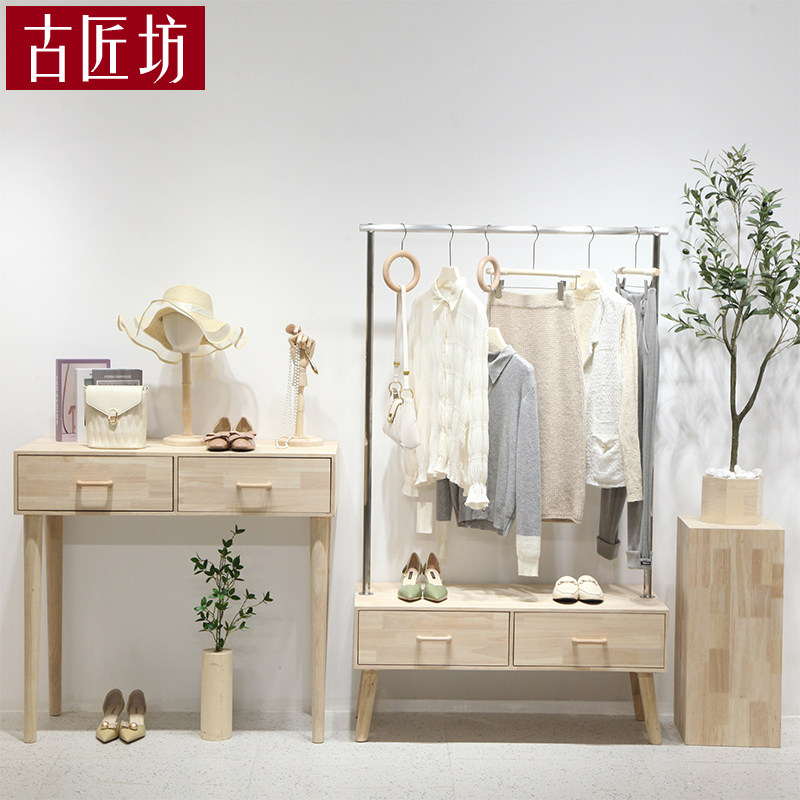 Women's clothing store display rack shoe rack bag rack rack simple log design clothing store cabinet floor island rack
