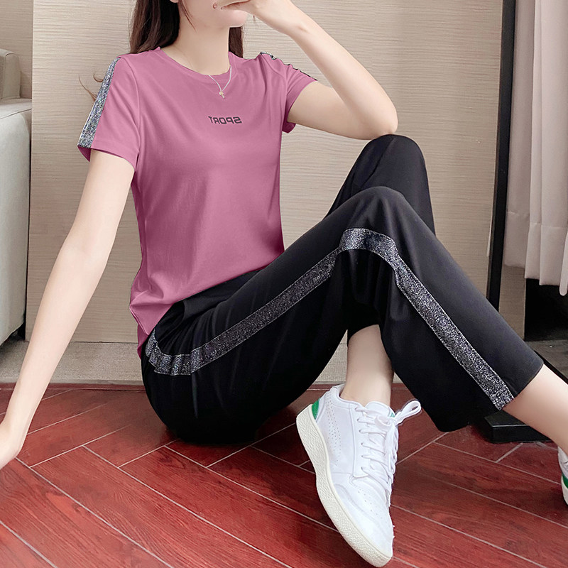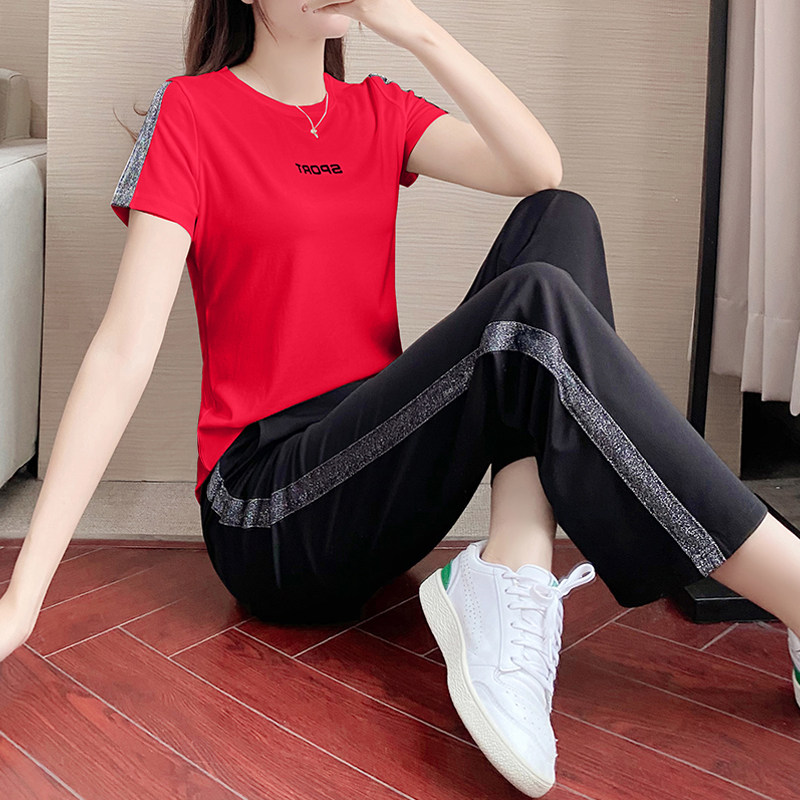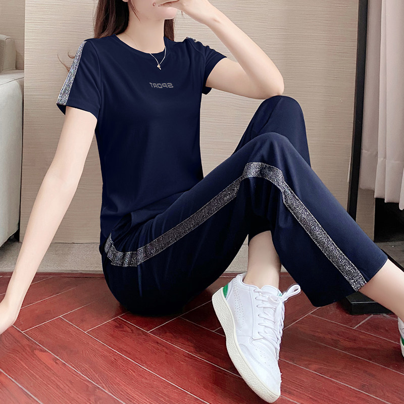 European Station White Ice Silk Casual Sports Suit Women Summer Grand size 2022 New fashion short sleeves Two sets of damp