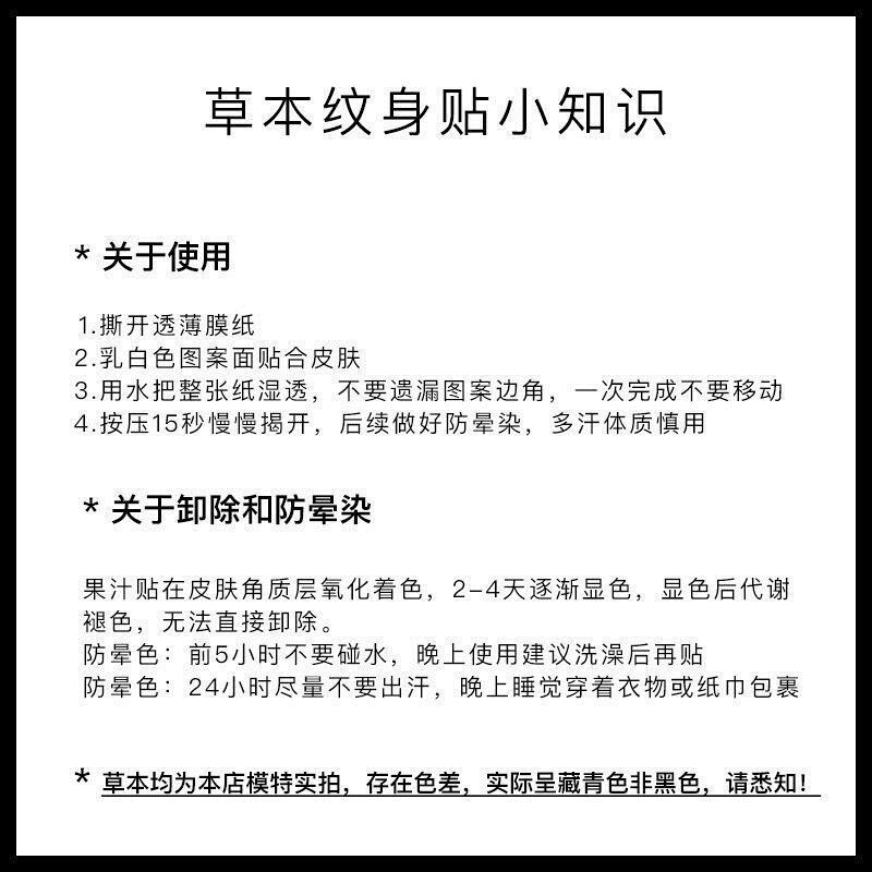 Cute Mini Finger Small Picture Grass Ben Juice Tattoo Patch Semi Persistent Waterproof Without Falling Color Realistic Sting Cyan