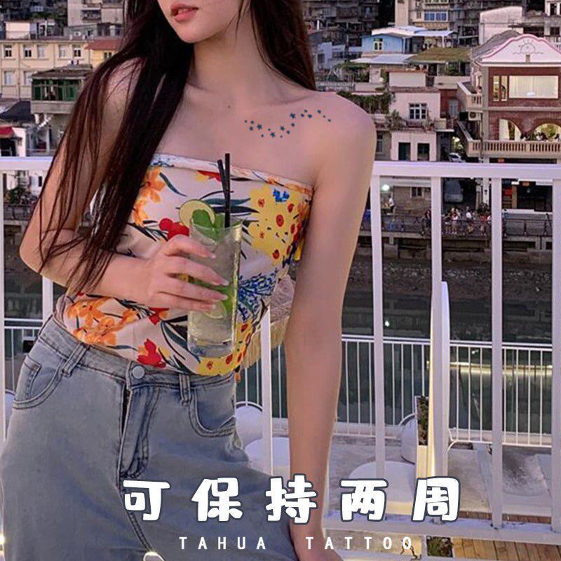 Small fresh star butterfly collarbone herbal juice tattoo stickers waterproof lasting non-fading half effect realistic