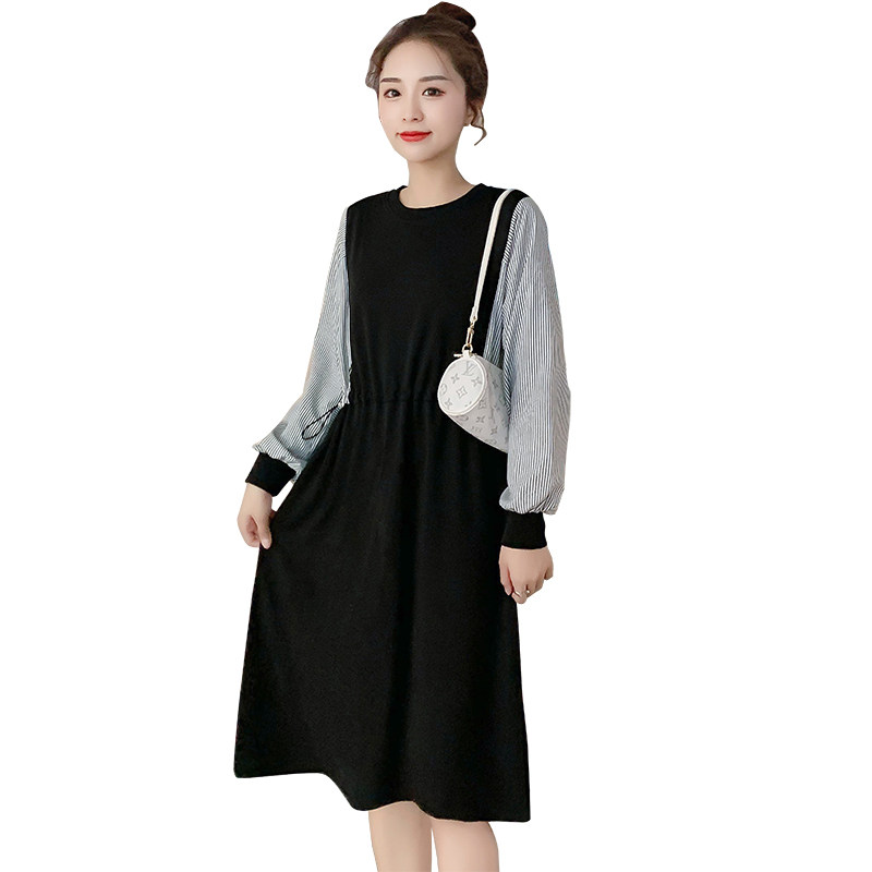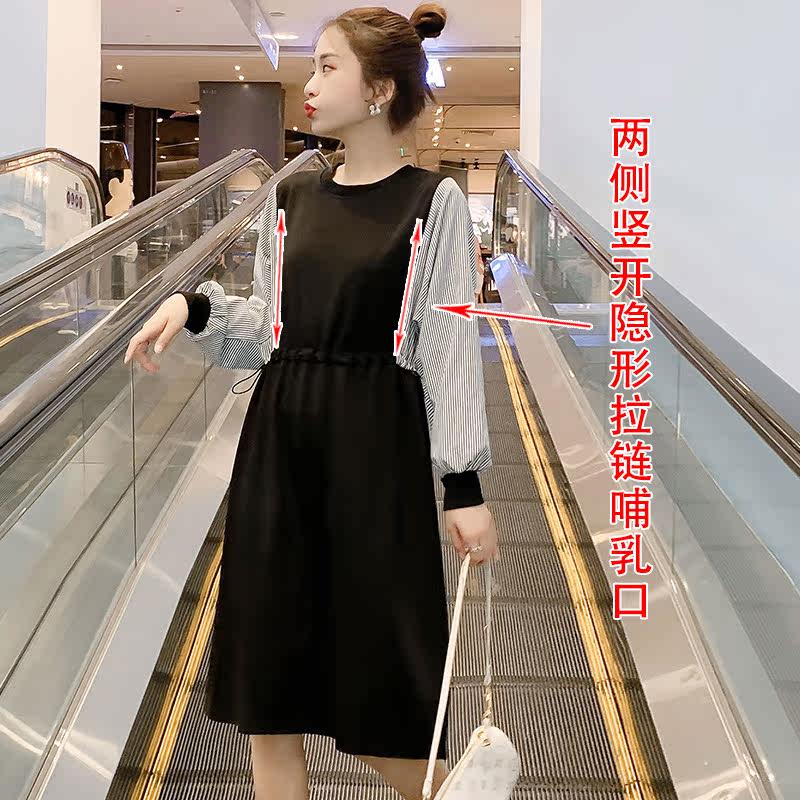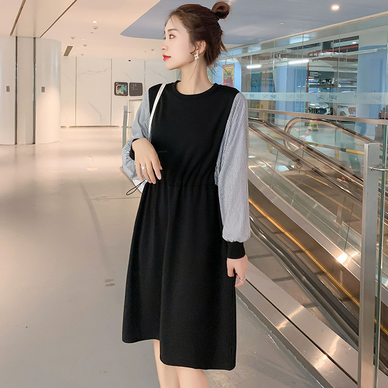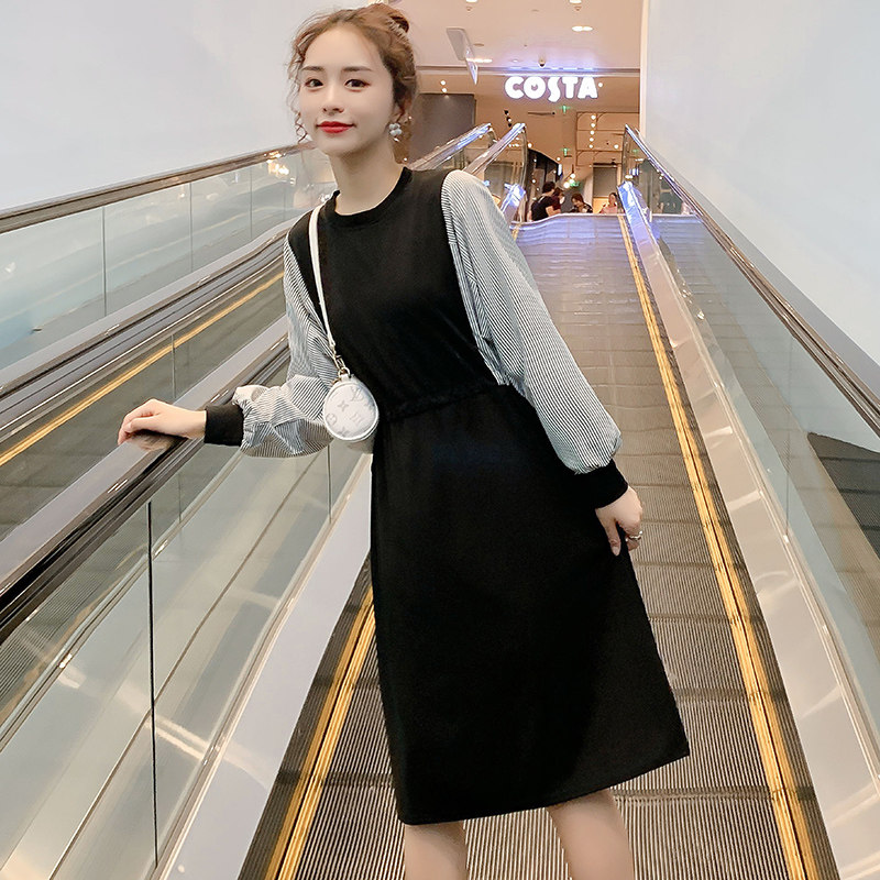 Pregnant women's autumn and winter clothing new splicing loose plus size dress autumn and winter plus velvet thick pregnant women breastfeeding skirt