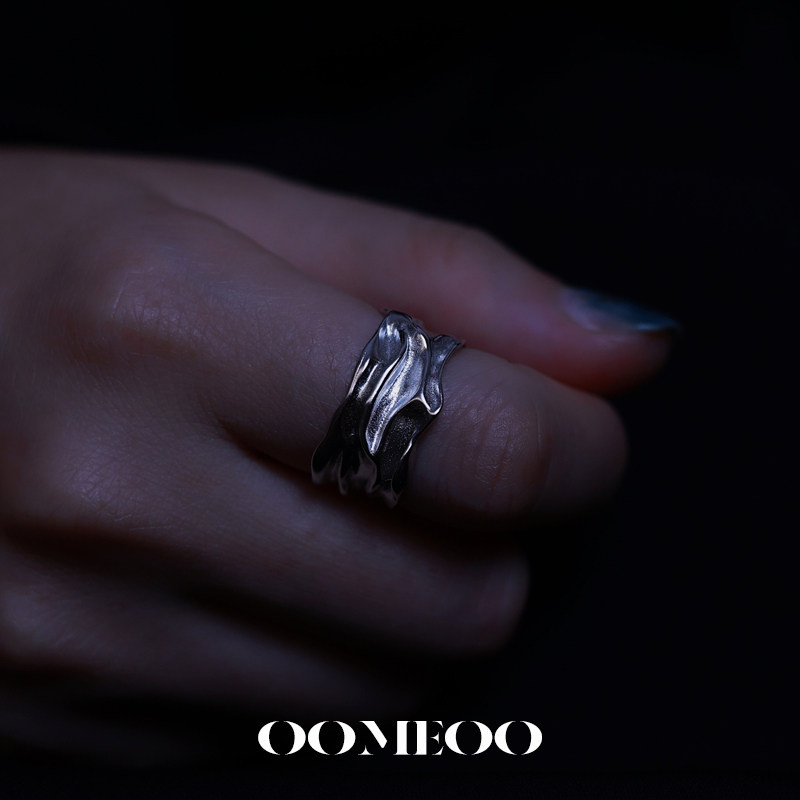 OOMEOO Wild Hope 925 Sterling Silver Index Finger Ring Women's 2021 New Fashion Men Irregular Dark Wind Opening