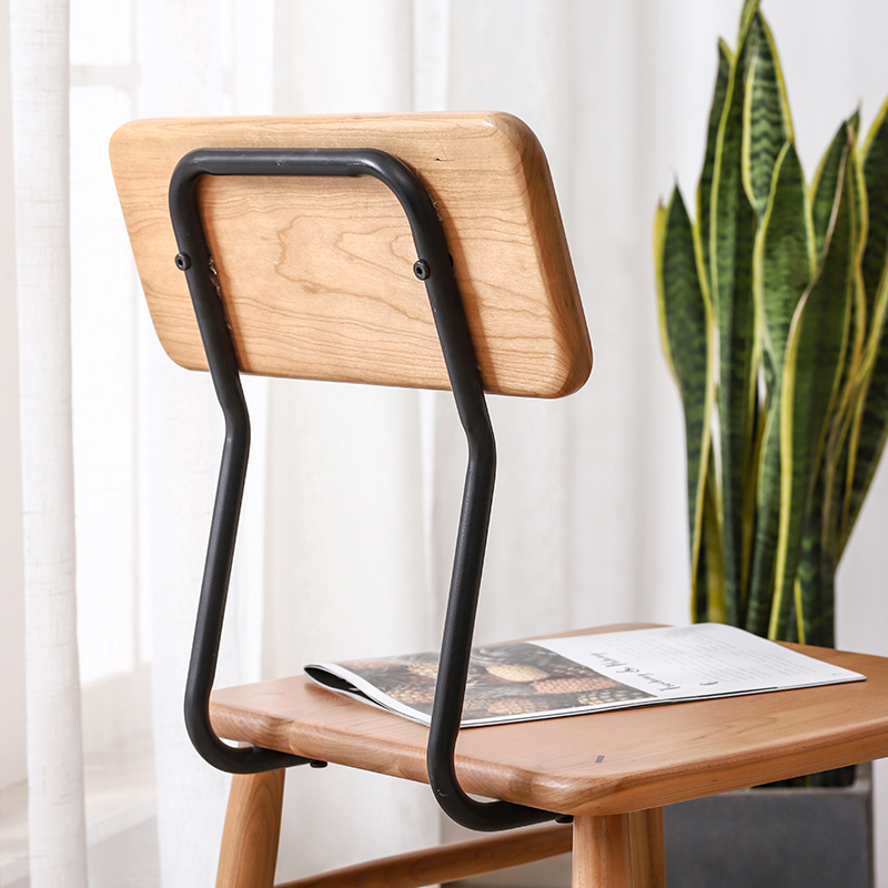 Lazy Diary Nordic Chocolate Dining Chair Solid Wood Chair Cherry Wood Modern Minimalist Iron Mesh Red Ins