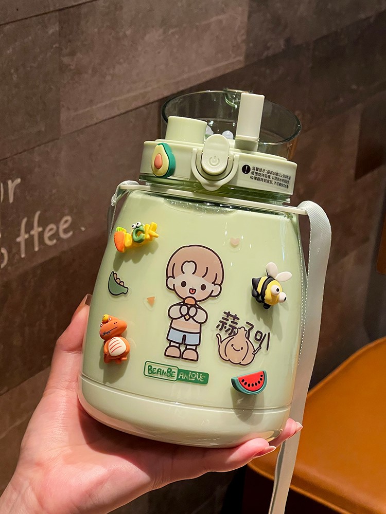Net red water cup cute Korean style water belly cup summer watertight straw girl ins large capacity 1 liter