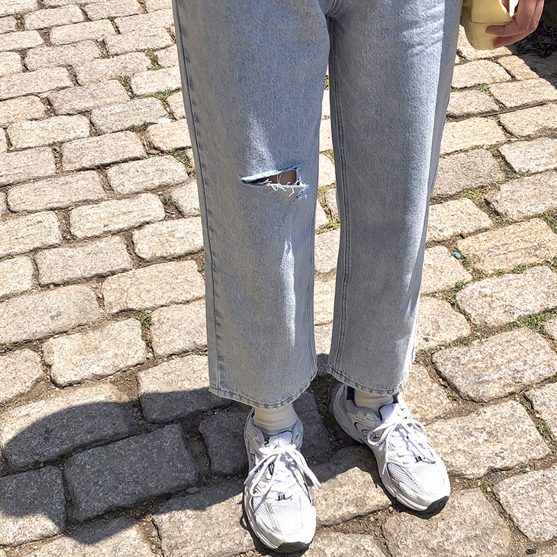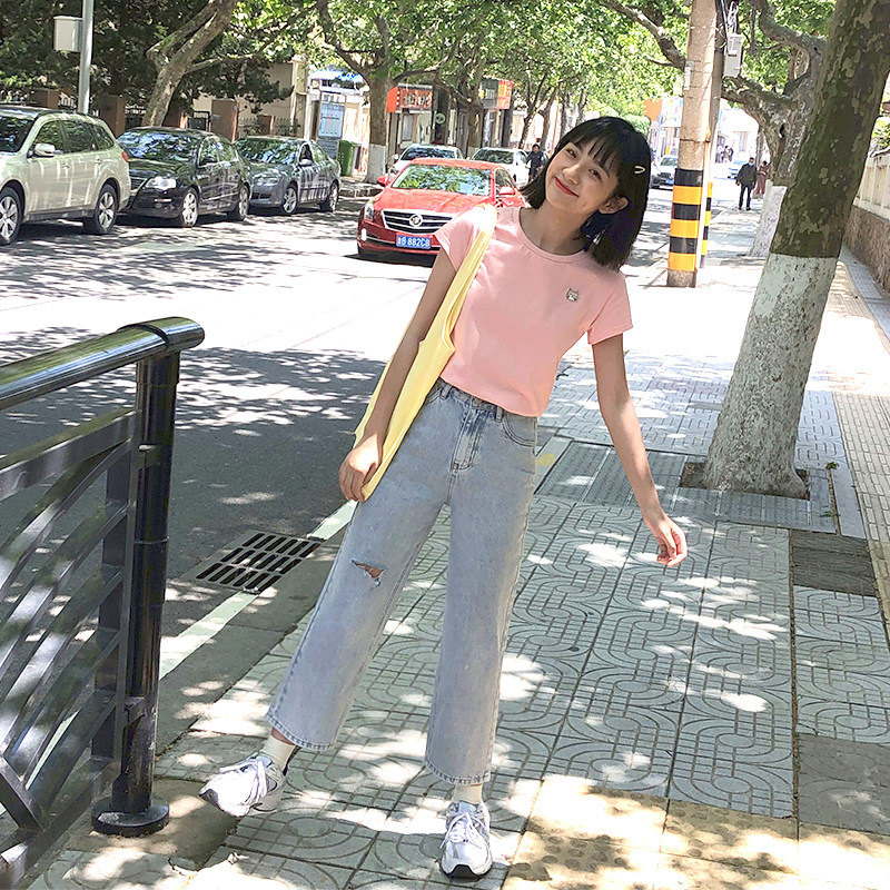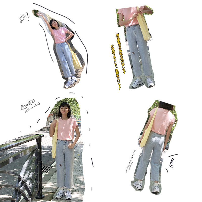 (clear cabin) RMB79 2 pieces RMB99 3 pieces area -- youthful display slim straight drum Broken Cowboy Pants Woman (August)