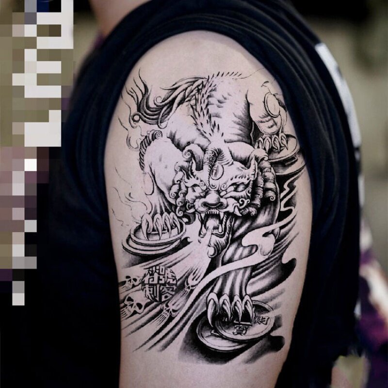 Qilin Pixiu Qiongqi tattoo stickers waterproof men's long-lasting flower arm half arm arm simulation tattoo sticker simulation Korea