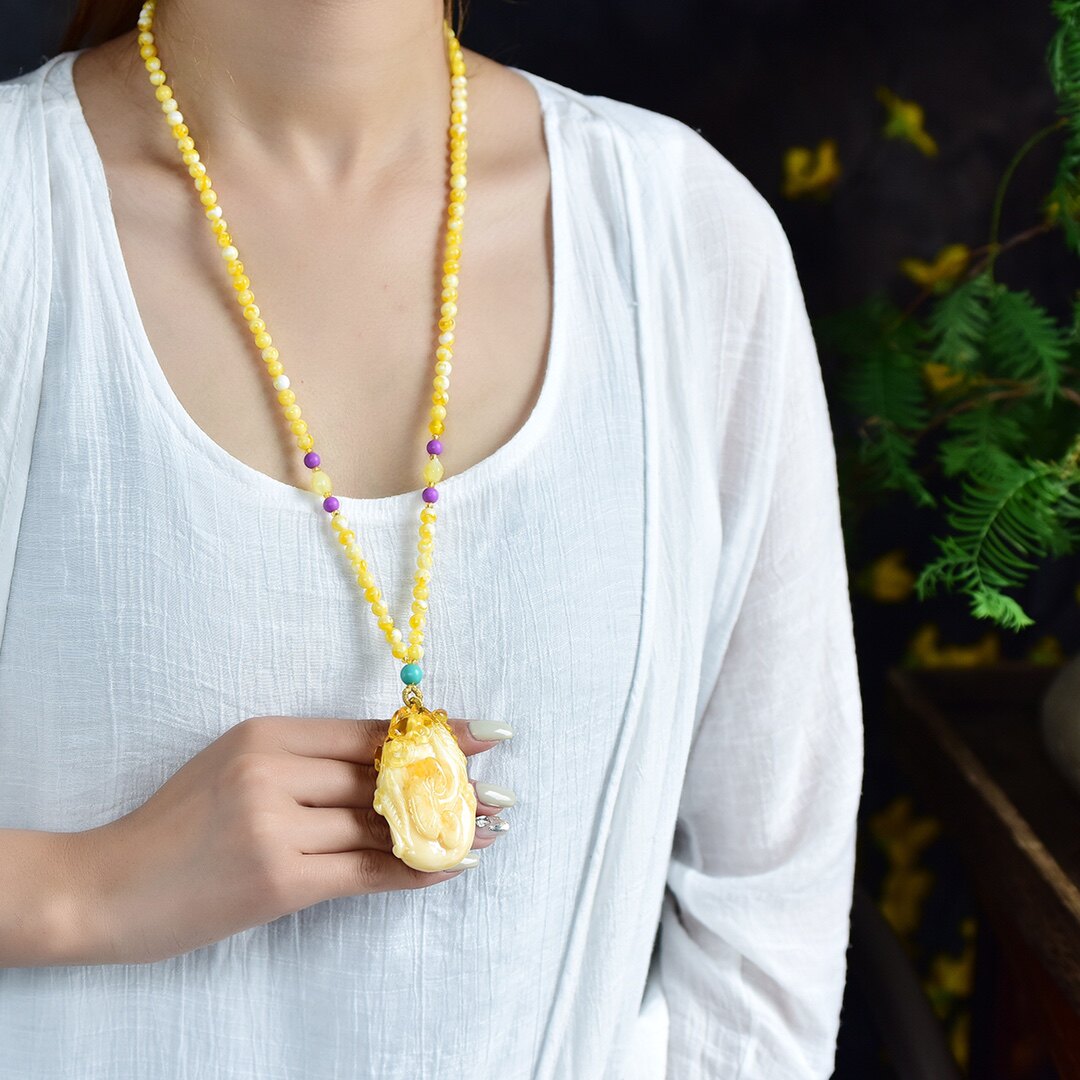 White Nectar Hyacinth Honey Wax Drop Pendant Sweater Necklace for men and women Natural Amber Old Nectar Necklace Pendant