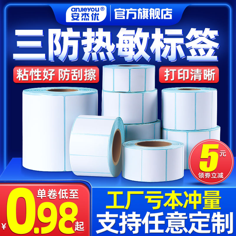 Anjie Youthree anti-heat sensitive paper E mailbag blank adhesive small ticket paper 40 50 60 70 70 30 80100 Label barcode printer Sticker Roll Price Waterproof Sticker Supermarket Electronic Scale