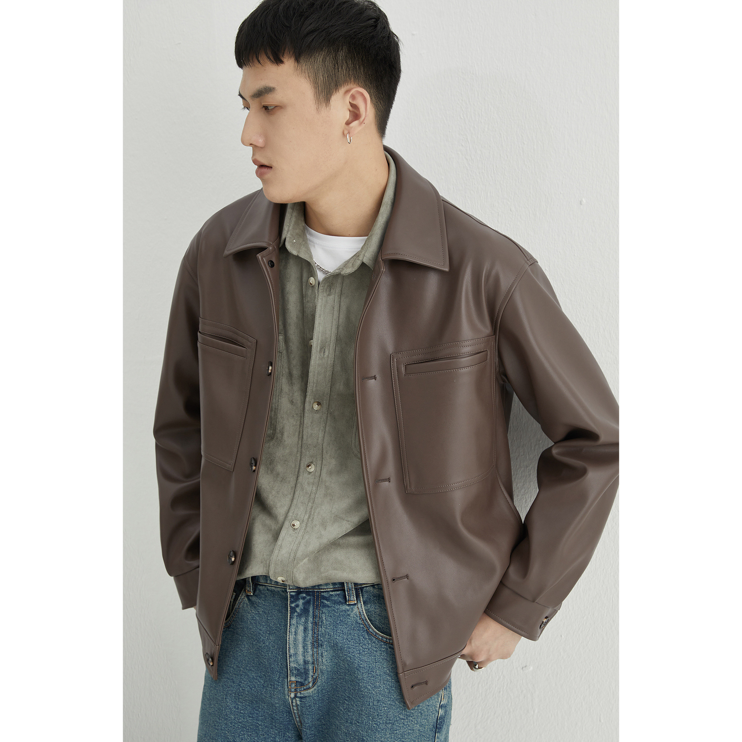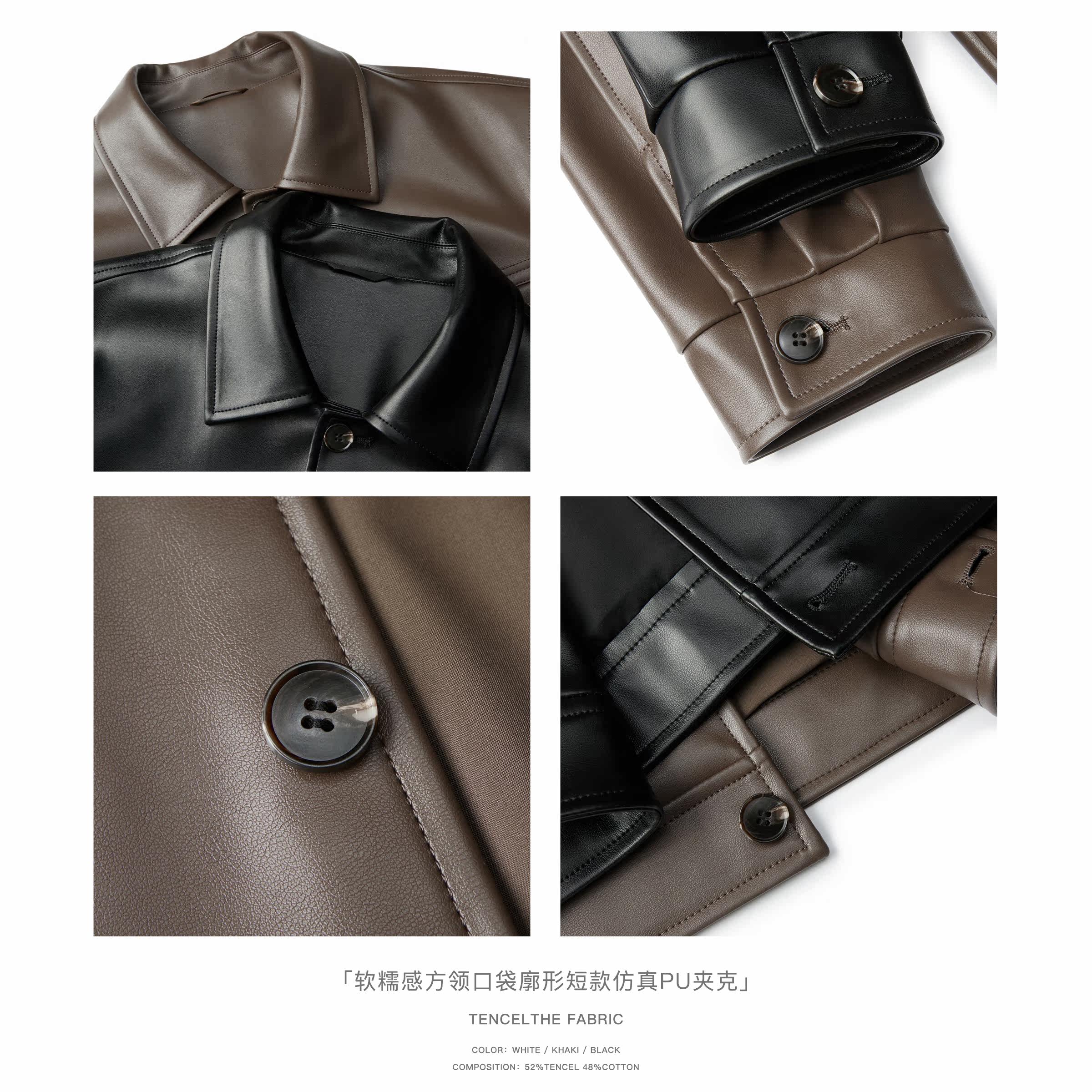 (Storage Lattice) Square Collar Leather Clothing Men's Fall Shoulders Pocket outline Jacket Tide Locomotive Leather Jacket Spring Autumn Season Men's Jacket
