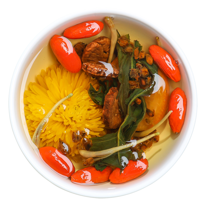 Chrysanthemum, wolfberry, cassia seed, honeysuckle, burdock root, nourishing liver, improving eyesight, protecting liver, removing liver fire, vigorous health tea bag
