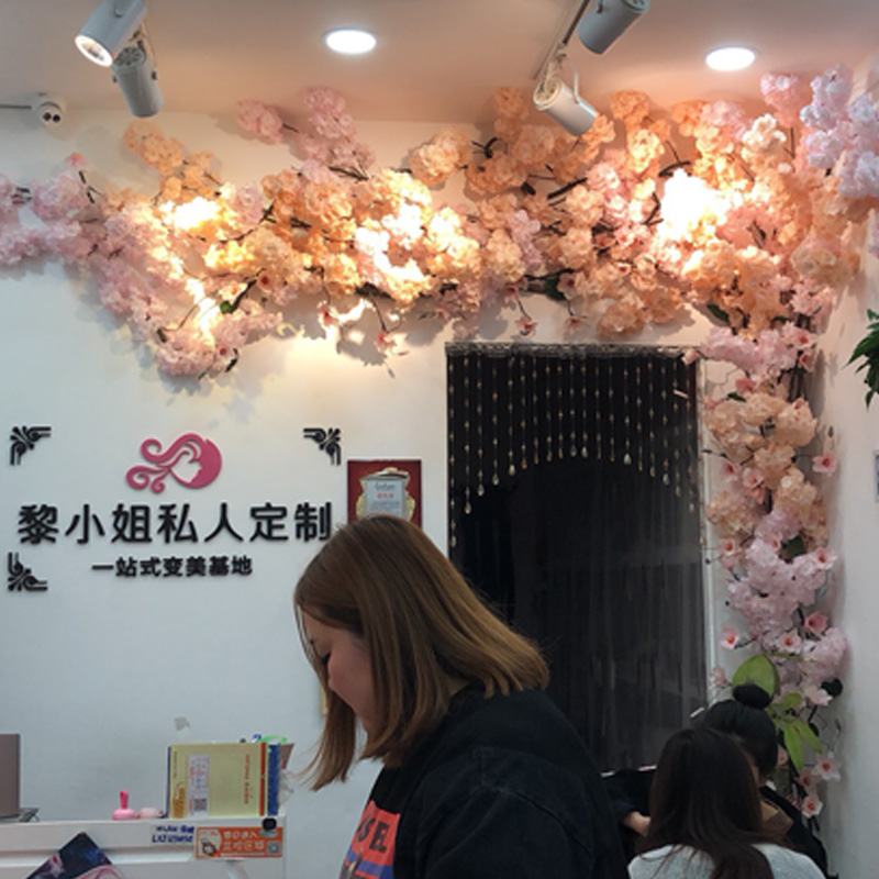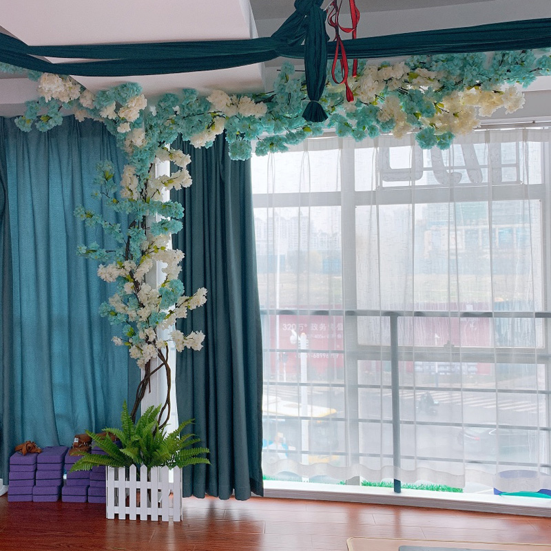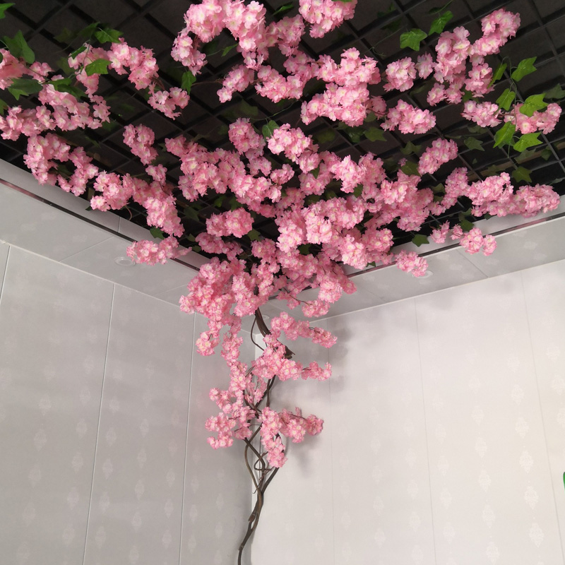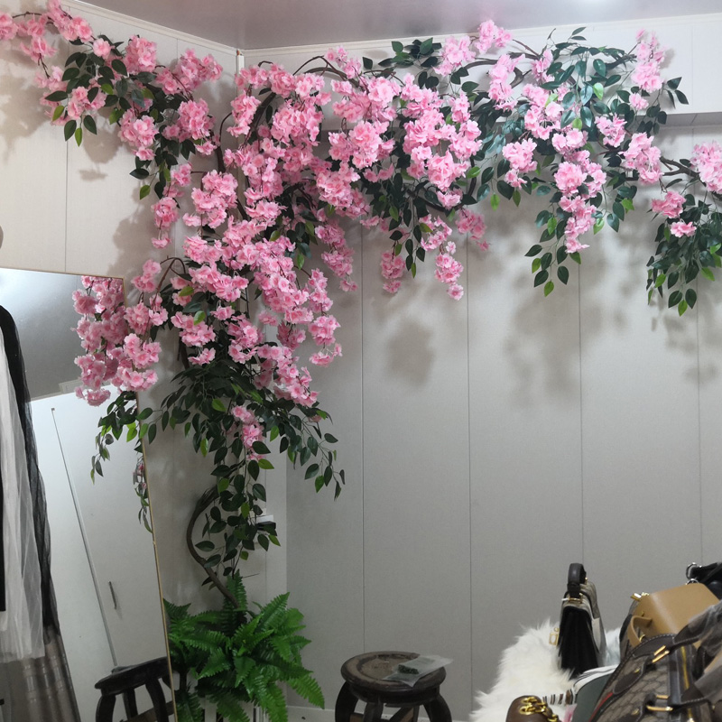 90 Degrees Wall Corner Cherry Blossom Package White Blue Combo Cherry Blossom Plan Background Wall Banyan Tree Large Package Tea Table Background Wall Cherry Blossom Plan TV Background Wall Cherry Blossom Decoration Hotel Decoration Cherry Blossom Package Pink Flowers