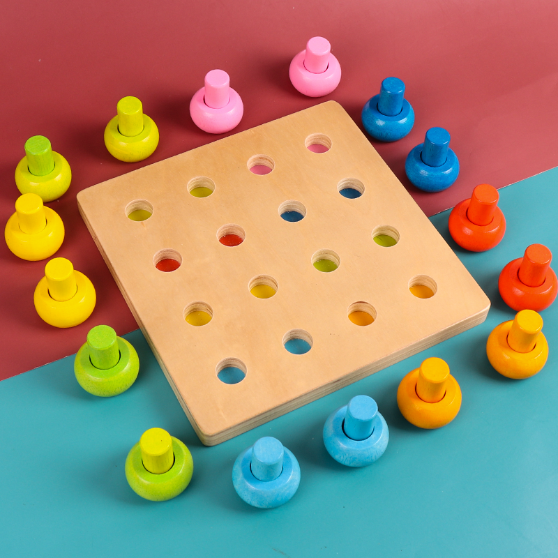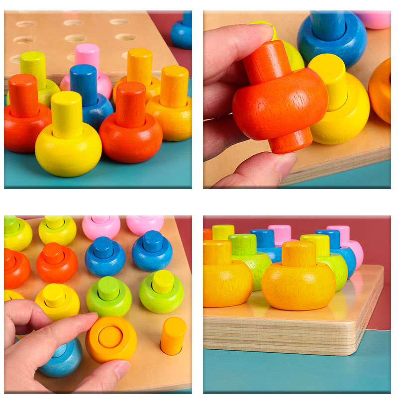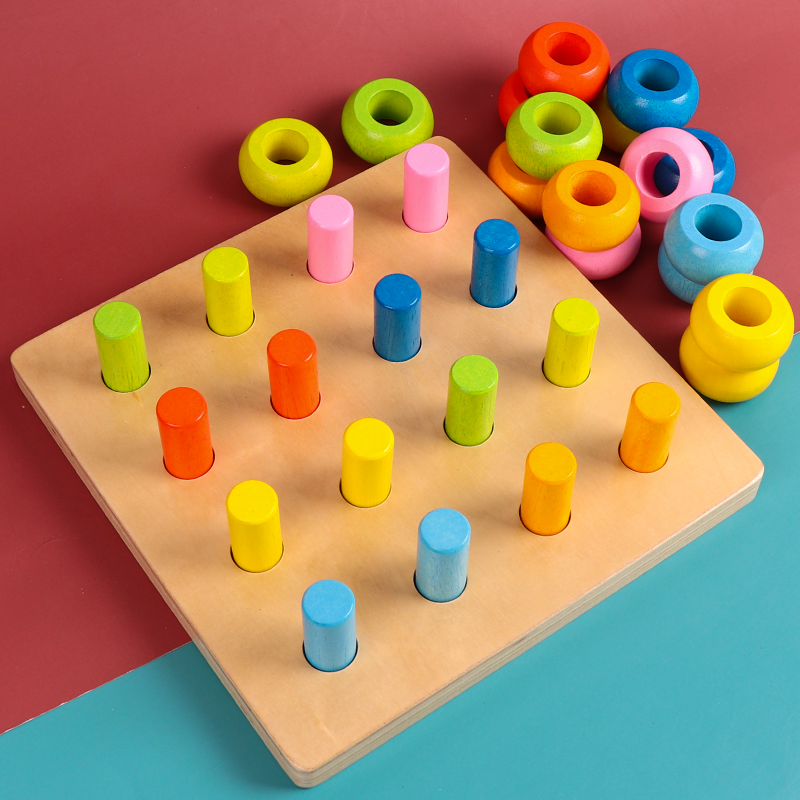 New solid wood base color matching board color matching board new color matching board OY shape four sets of columns new color matching board Montessori geometric figure board new color matching board BTN large size