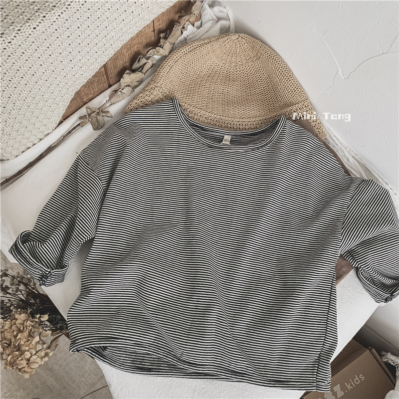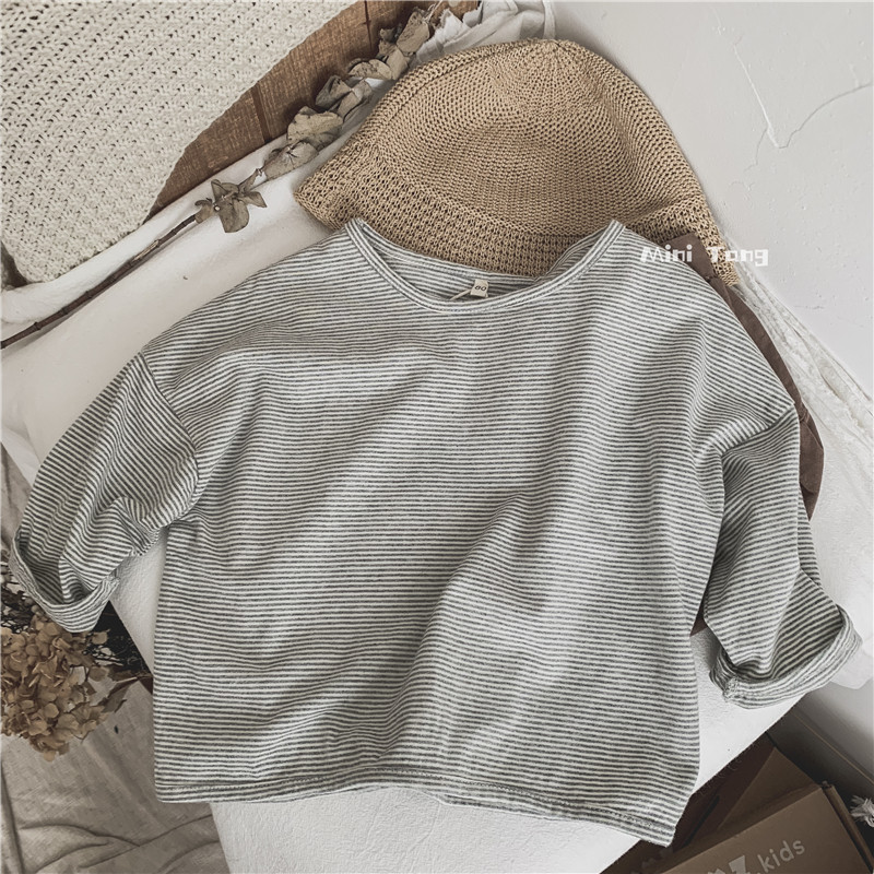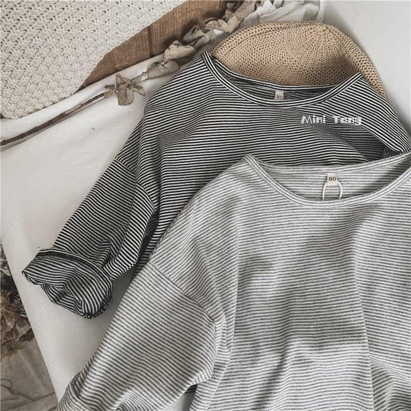 Very high quality ~ children 100 hitch loose fine interval striped striped long sleeve T-shirt neutral male and female child clothing full cotton blouse autumn