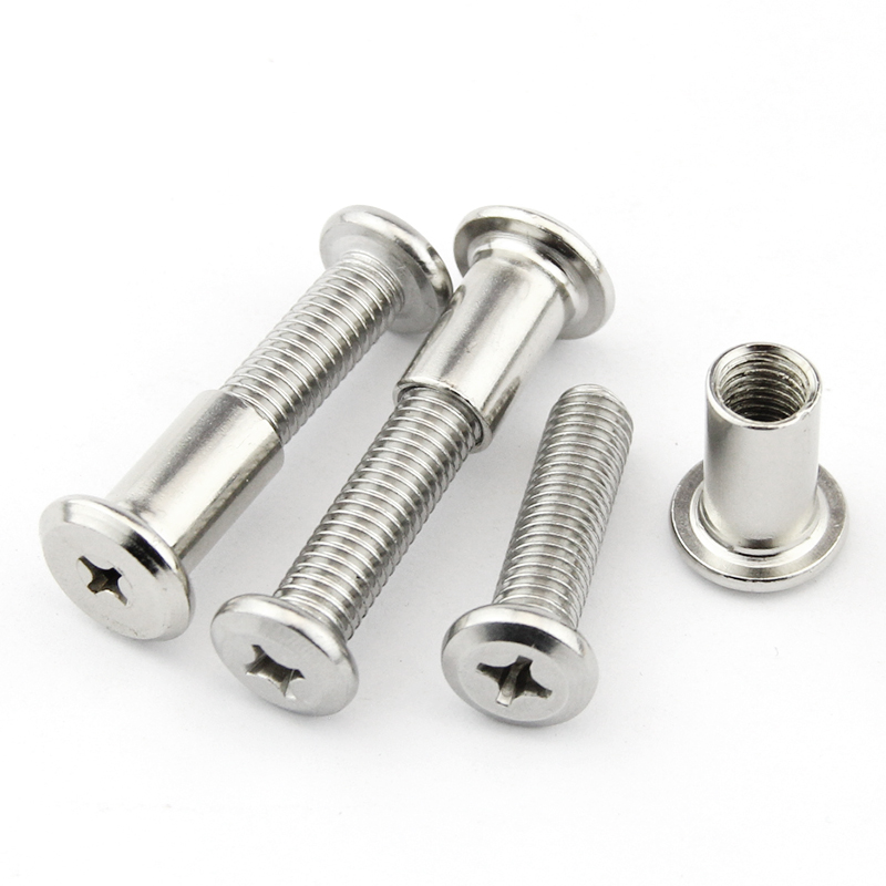 Nickel-plated flat head cross lock screw knock splint nut children's furniture bed combination connection sub-mother nail M6M8
