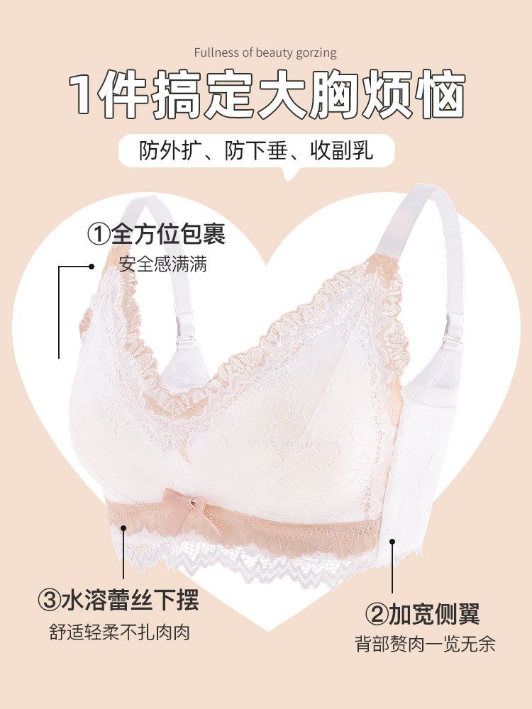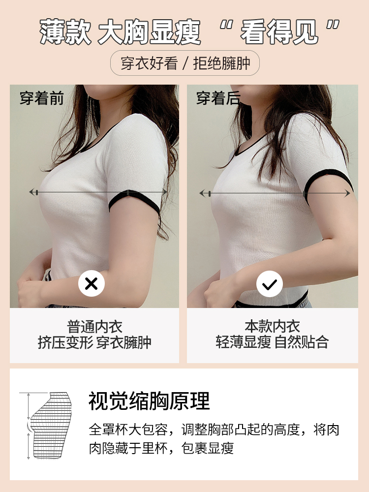 Large size underwear female large breasted chest for small summer slim shrink-breasted without steel ring adjustment-type auxiliary milk anti-sagging bra hood