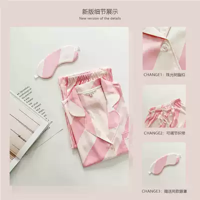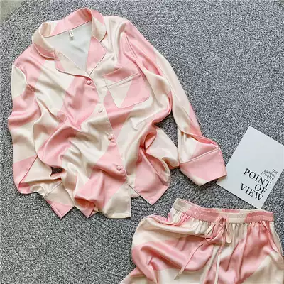 Gentle and neatness ~ OLOEY spring and autumn pajamas female silk long sleeve set short sleeve silky stripe home wear