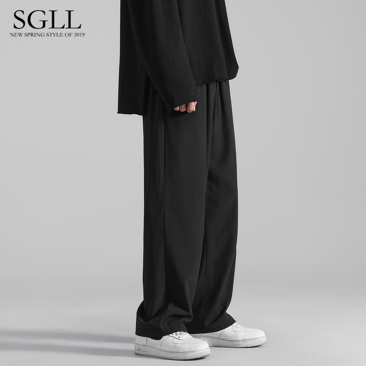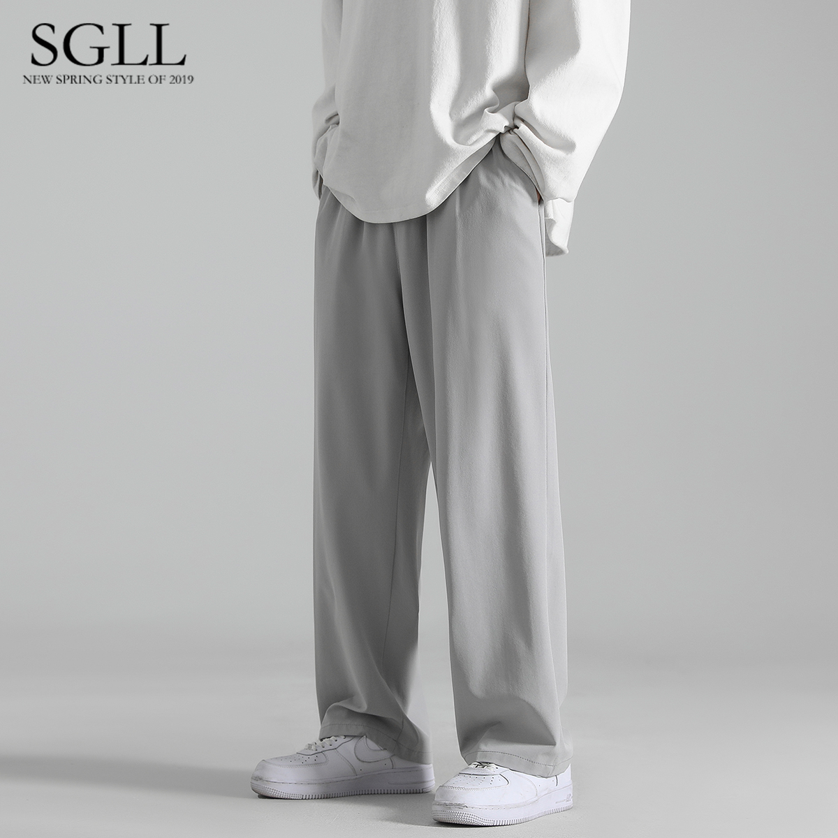 Men's trousers summer thin section trendy loose casual air-conditioned trousers wide-leg straight tube drape silk skating silk trousers