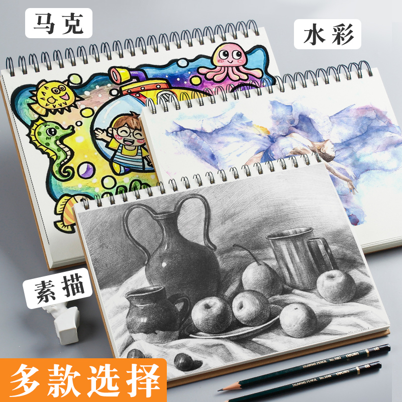 Thickened Hard Shell Coil Sketching art Students Special Elementary students 8K Painting A4 Painting A4 drawing Kindergarten 16K Macpen Painting A3 blank drawing speed Write watercolor paper A5 Painting Book 32K