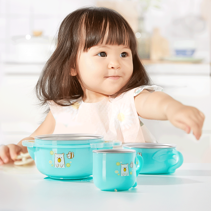 Green Nose Greennose Insulation Bowl Anti-Fall Hot Suction Cup Silicone Gel 5 Pieces Baby Cutlery Cutlery