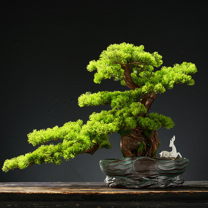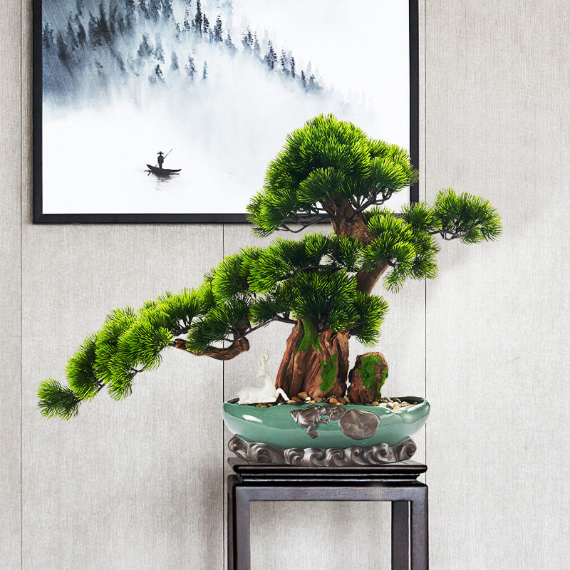 New Chinese simulation bonsai welcome pine ornaments porch living room home office hotel tea table decorations landscaping