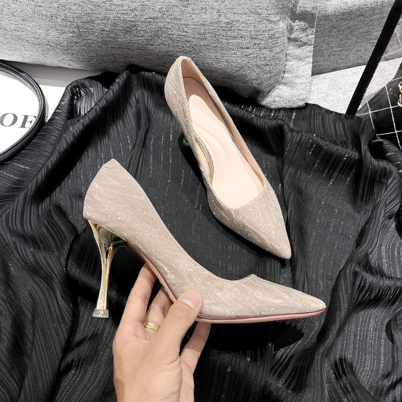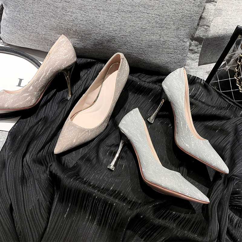 Mostarsea luxury temperament ~ silver high heels women's stiletto girls bridesmaid shoes champagne wedding shoes can be worn every day