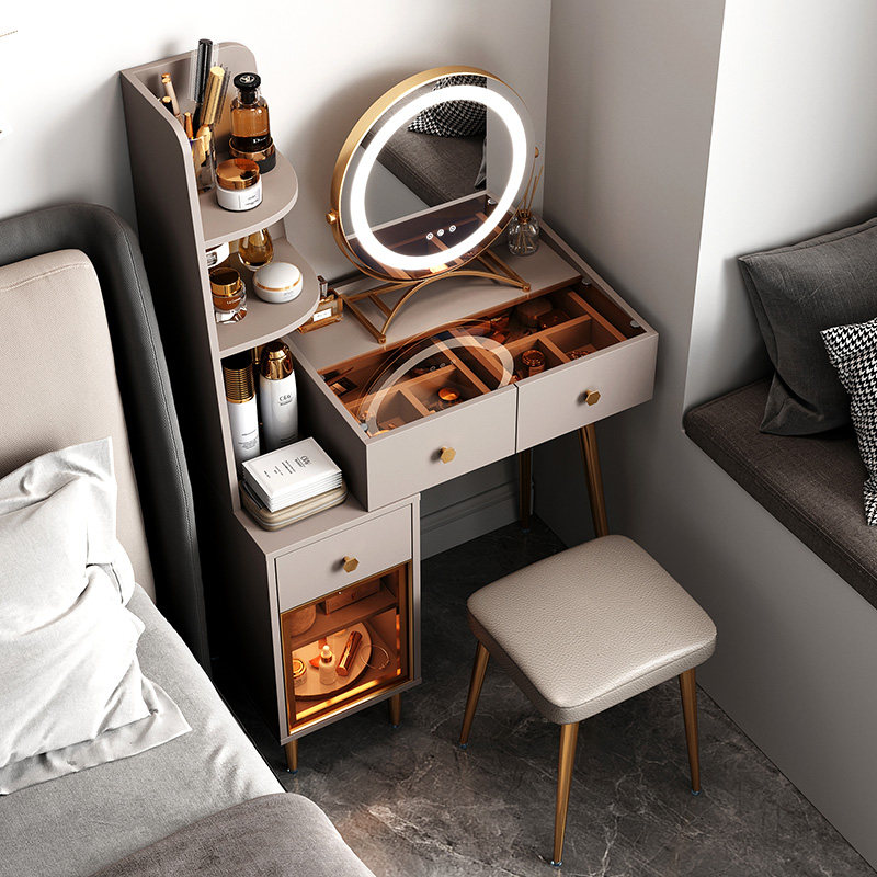 Light luxury dressing table high-end storage cabinet one steel glass bedroom telescopic dressing table net red ins dressing table