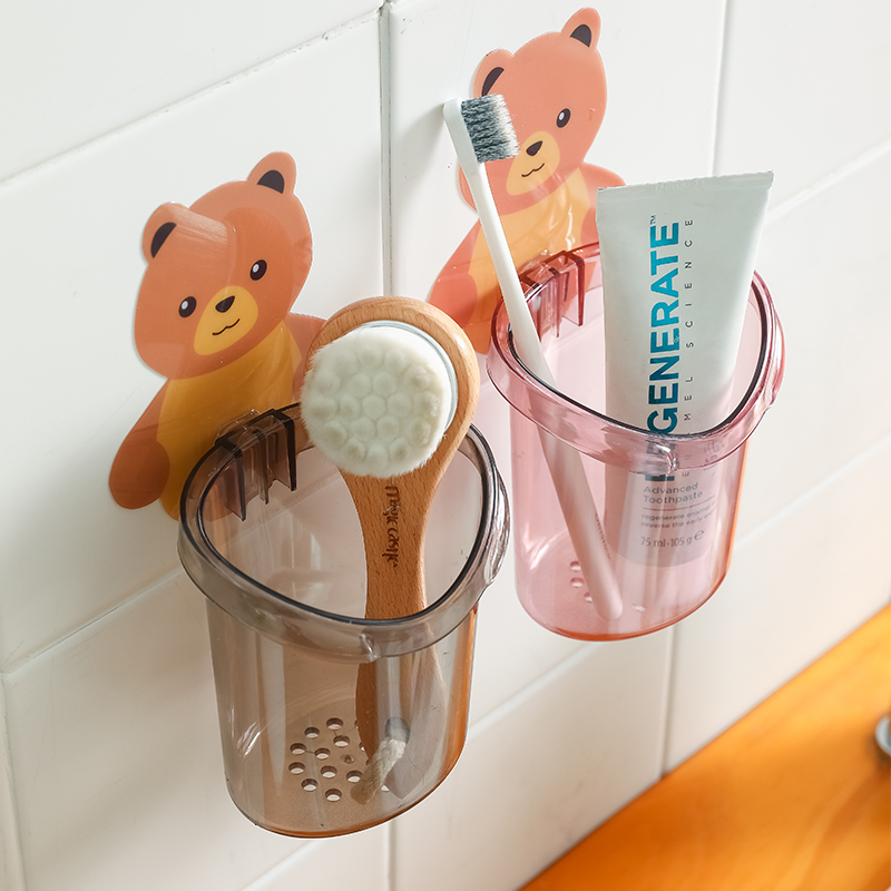 Small Bear Toothbrush Shelf Free to punch Electric toothbrush rack Tooth Cup Wall-mounted Tooth containing box Insert Cylinder dressing room