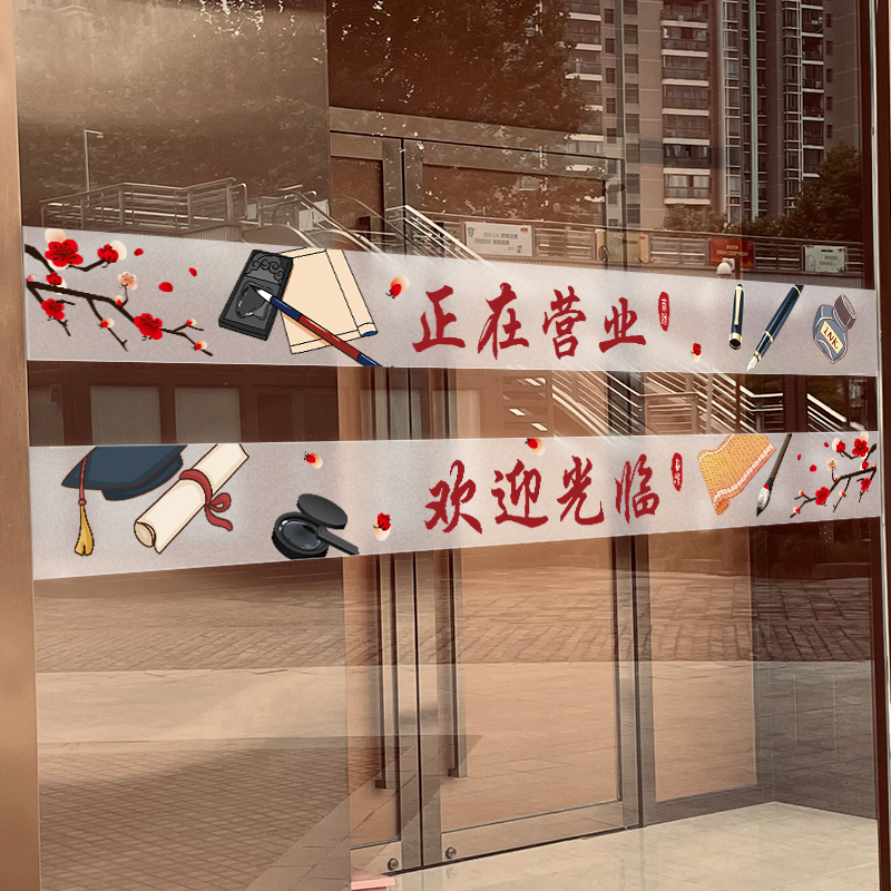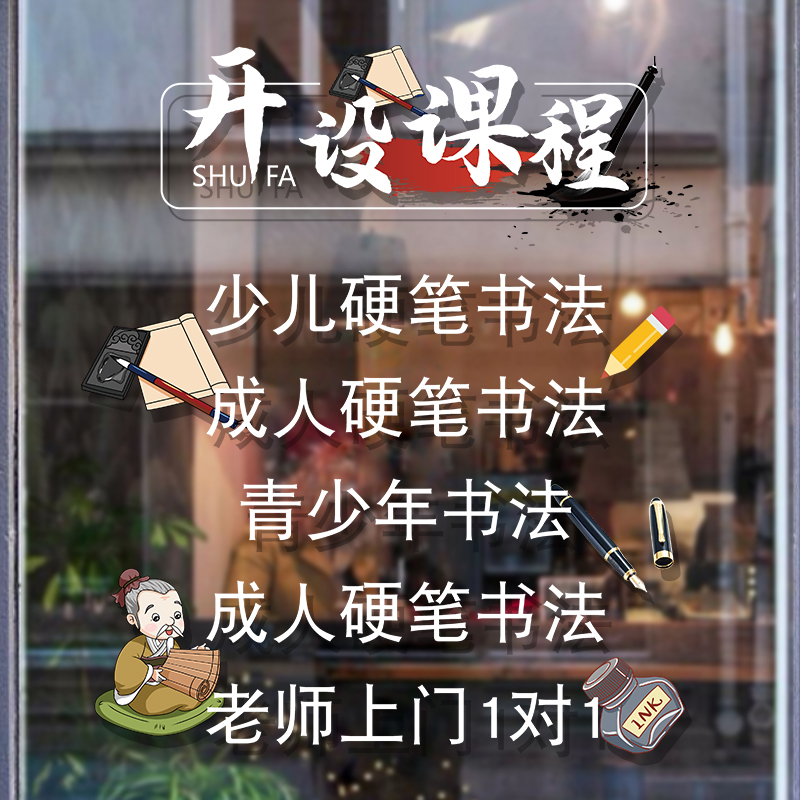 Custom business hours calligraphy training glass door decoration stickers brush soft pen hard pen interest class waistline stickers