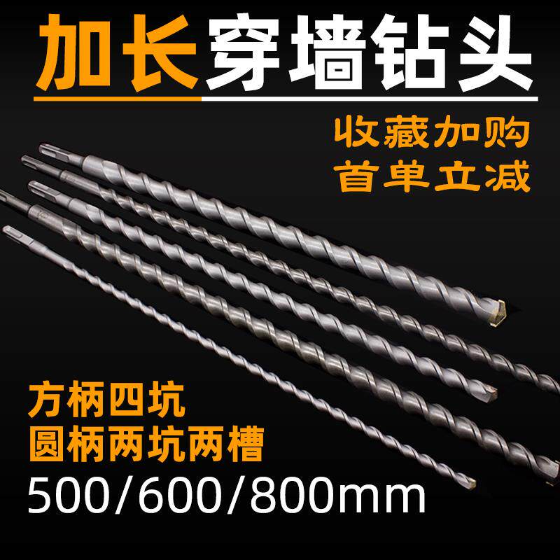 ' lengthened electric hammer drill shock drill 350mm500mm square handle 4-pit round handle wearing wall over wall concrete planting fascia