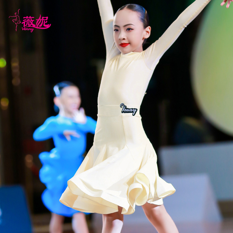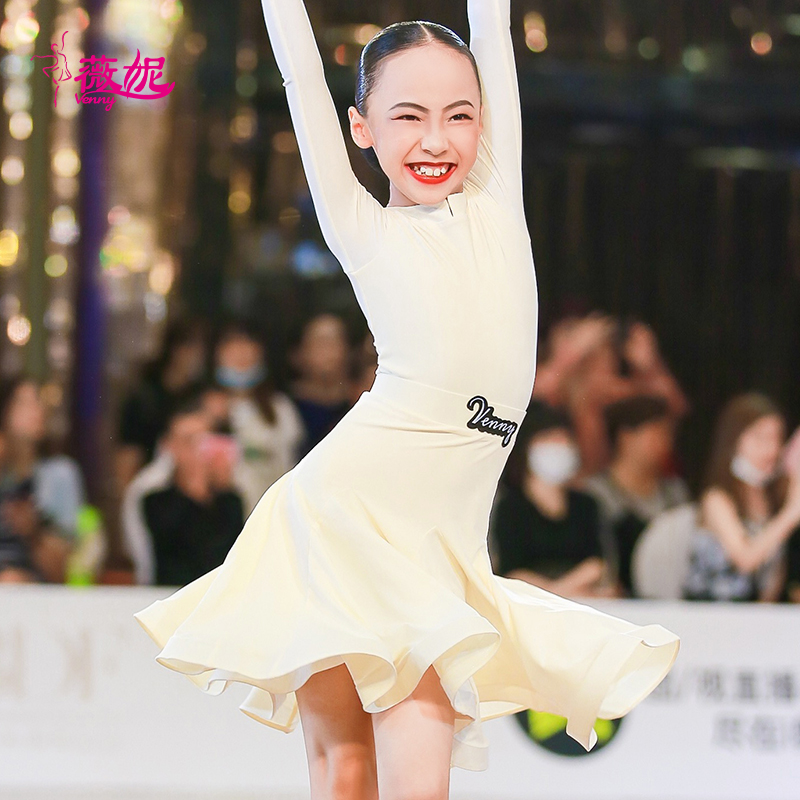 venny Vienie Latin dance dress girl's summer fish bone dress set to suit a new female child Two-style race suit