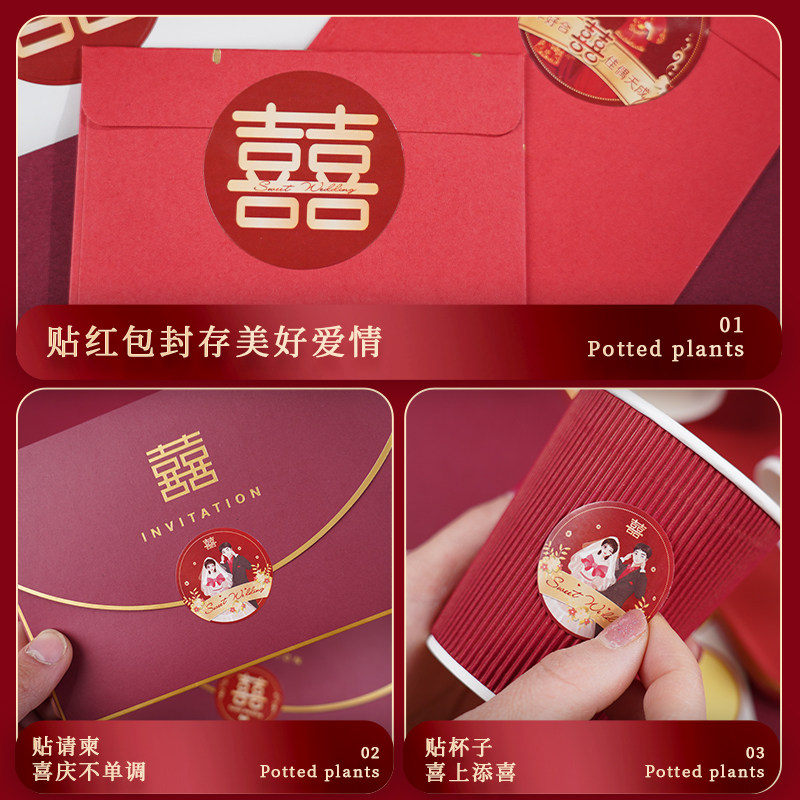 Wedding Adhesive Happy Character Wedding Small Happy Words Stickers Sugar Box Red Packet Closure With Egg Patch Wedding items Great All