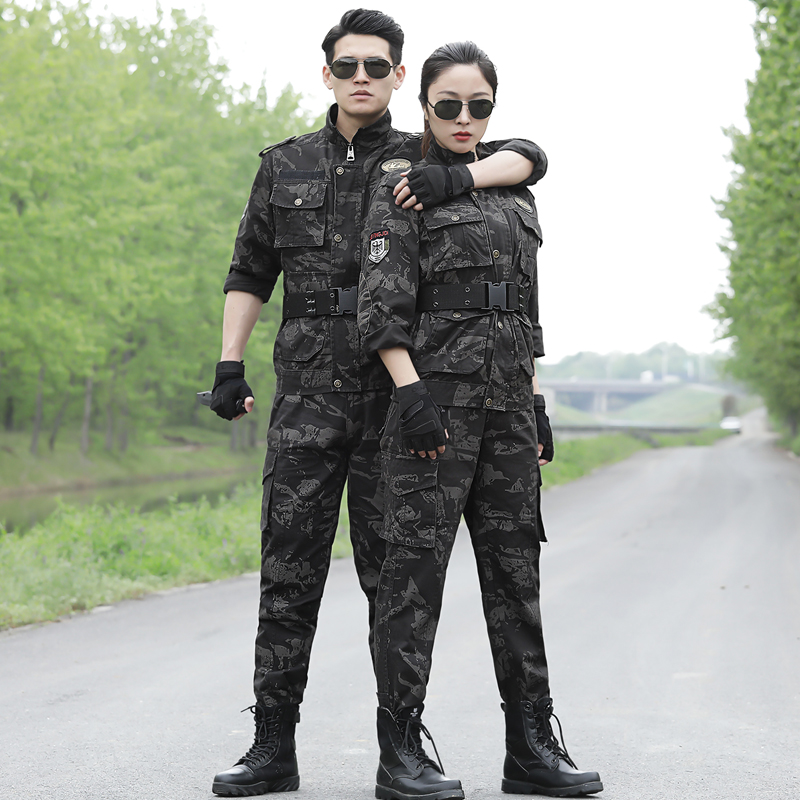 Shilong pure cotton camouflage suit men outdoor clothing regular wear-resistant to wear-resistant insurance officer training suit for Spring and Autumn