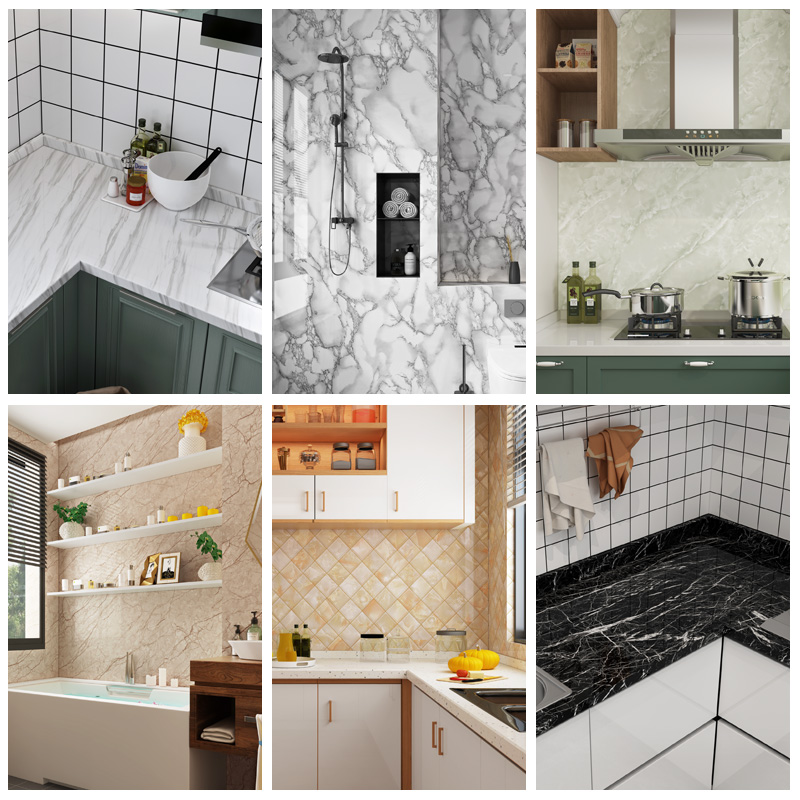 10 m kitchen anti-oil stickers wallpaper self-adhesive waterproof overall cabinet foci Marble Cling Film Furniture Refurbishment Wall Sticker