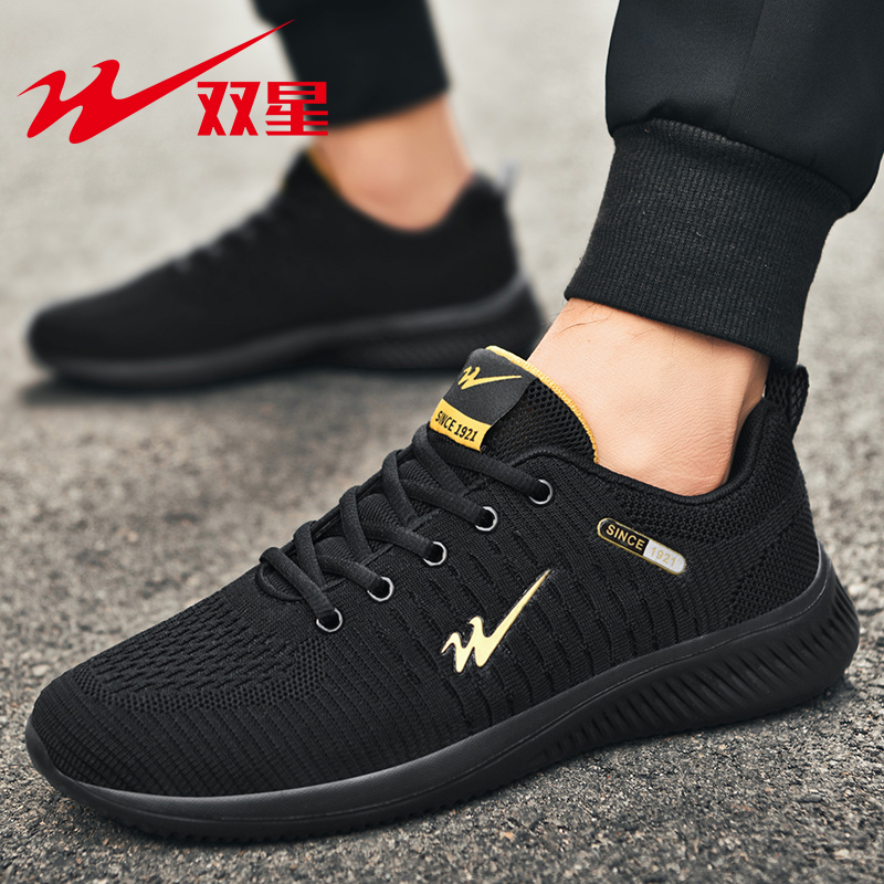 Double star running shoes men's summer new fly-woven mesh trainer breathable lightweight cushioning non-slip casual shoes