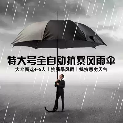 Automatic oversized folding umbrella long handle large double multi-person business home men and women rainstorm special straight handle large umbrella