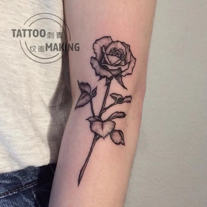(new) Tattoo Sticker Rose Arms Dark Black Ensemble Waterproof Persistent Personality Female Male Pattern Tide Net Red