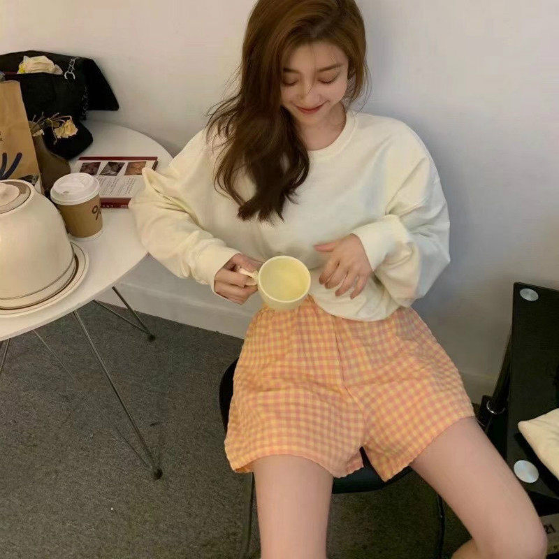 Thin home shorts summer sweet floral pants Korean version cotton and linen plaid pants loose casual pajamas women can wear outside