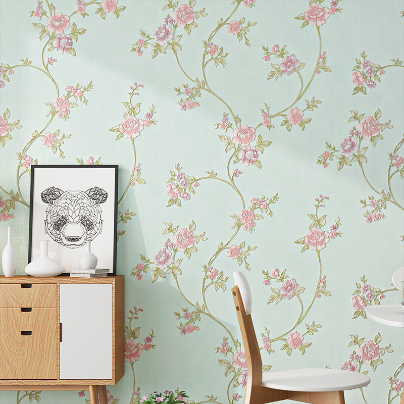 Love House Oriental Wallpaper Self-Glued Bedroom Cozy Fields Garden Light Green 3d Solid Dining Room Background Wall Wallpaper Self-Stickers