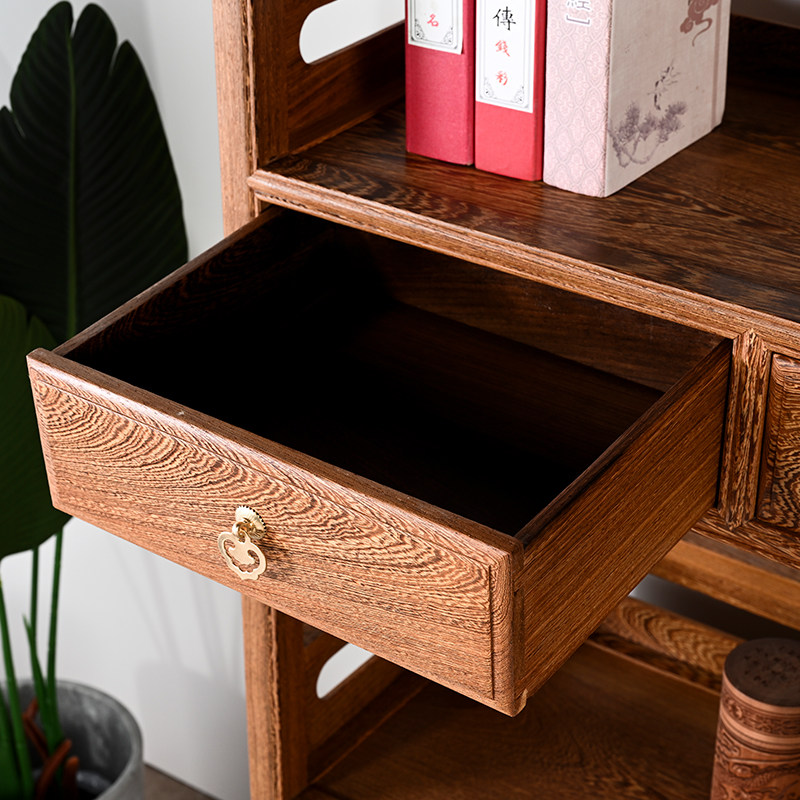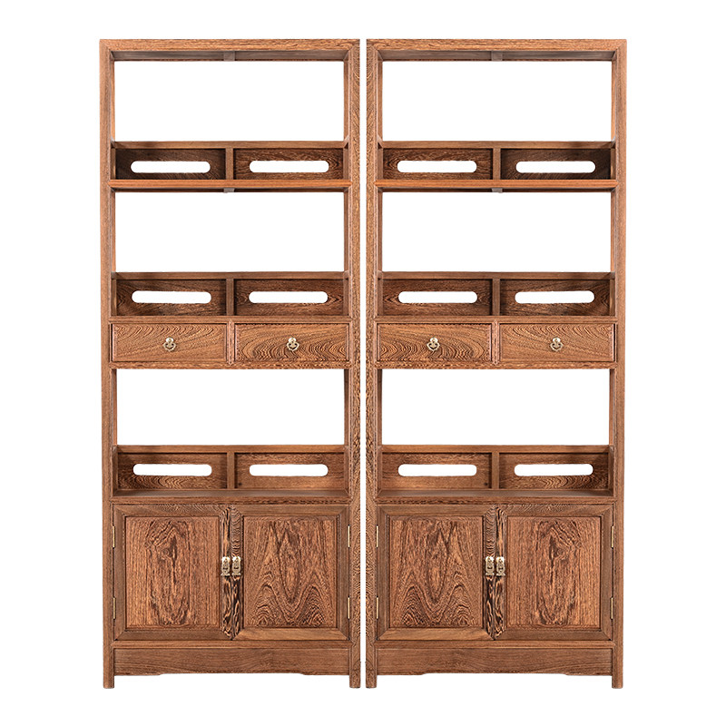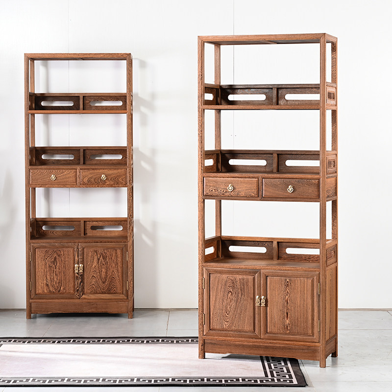 Red Wood Bookshelf Floor Combination Chicken Wings Wood Solid Wood Imitation Ancient Multilayer Show Shelf Bookcase Exhibition Original Wood Color Bookcase With Cabinet