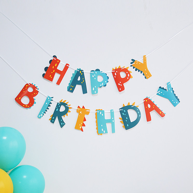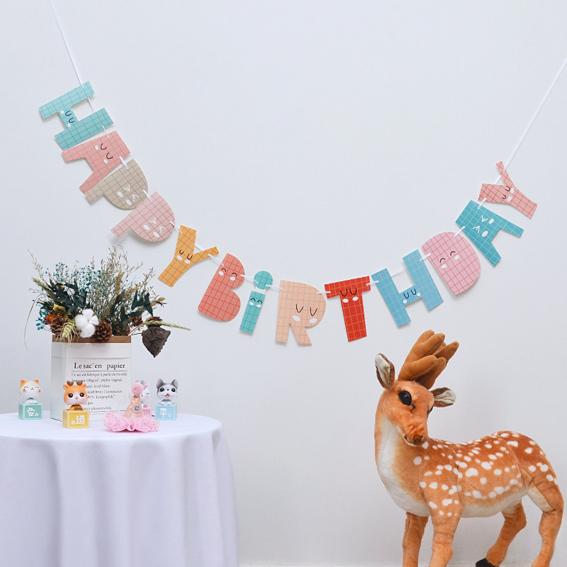 Happy birthday pull flag animal pull flower children's party decoration banner holiday decoration hanging flag pull props