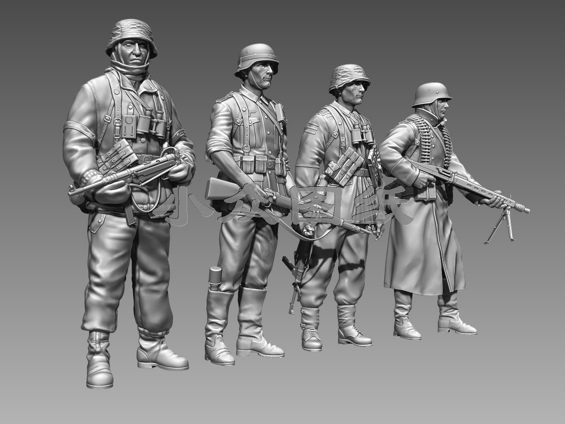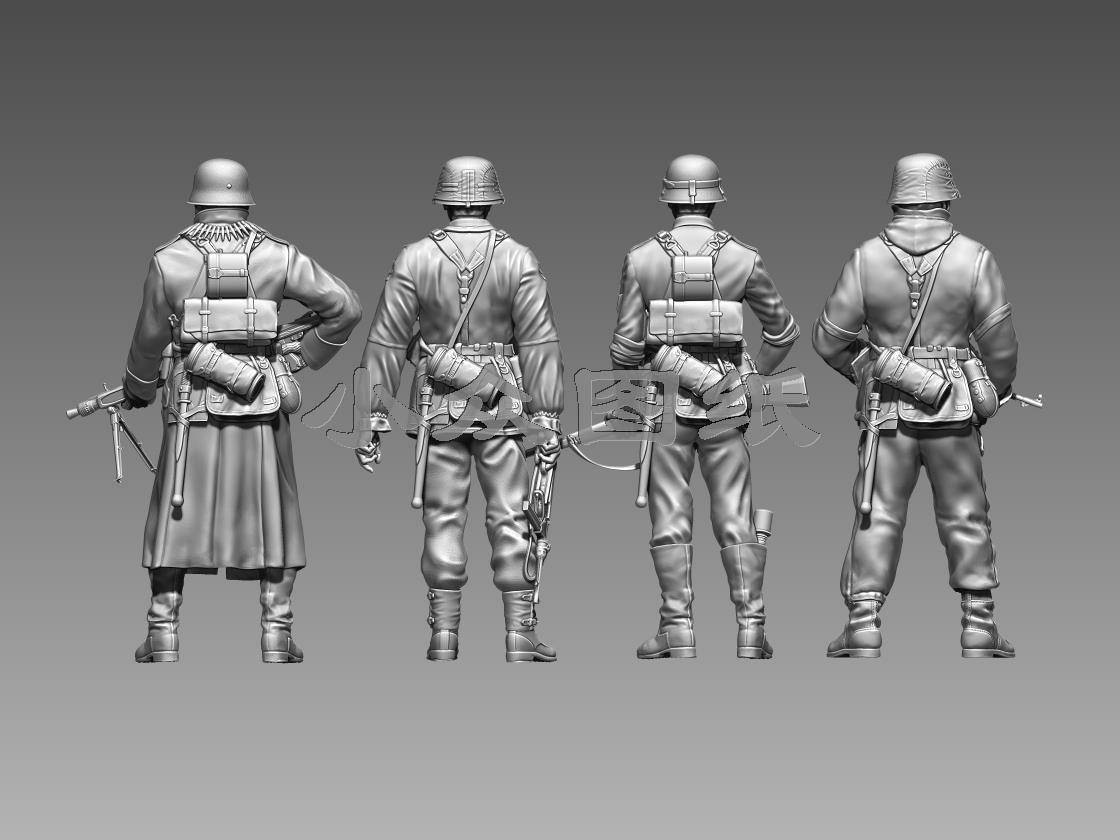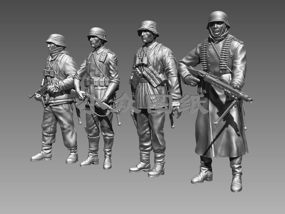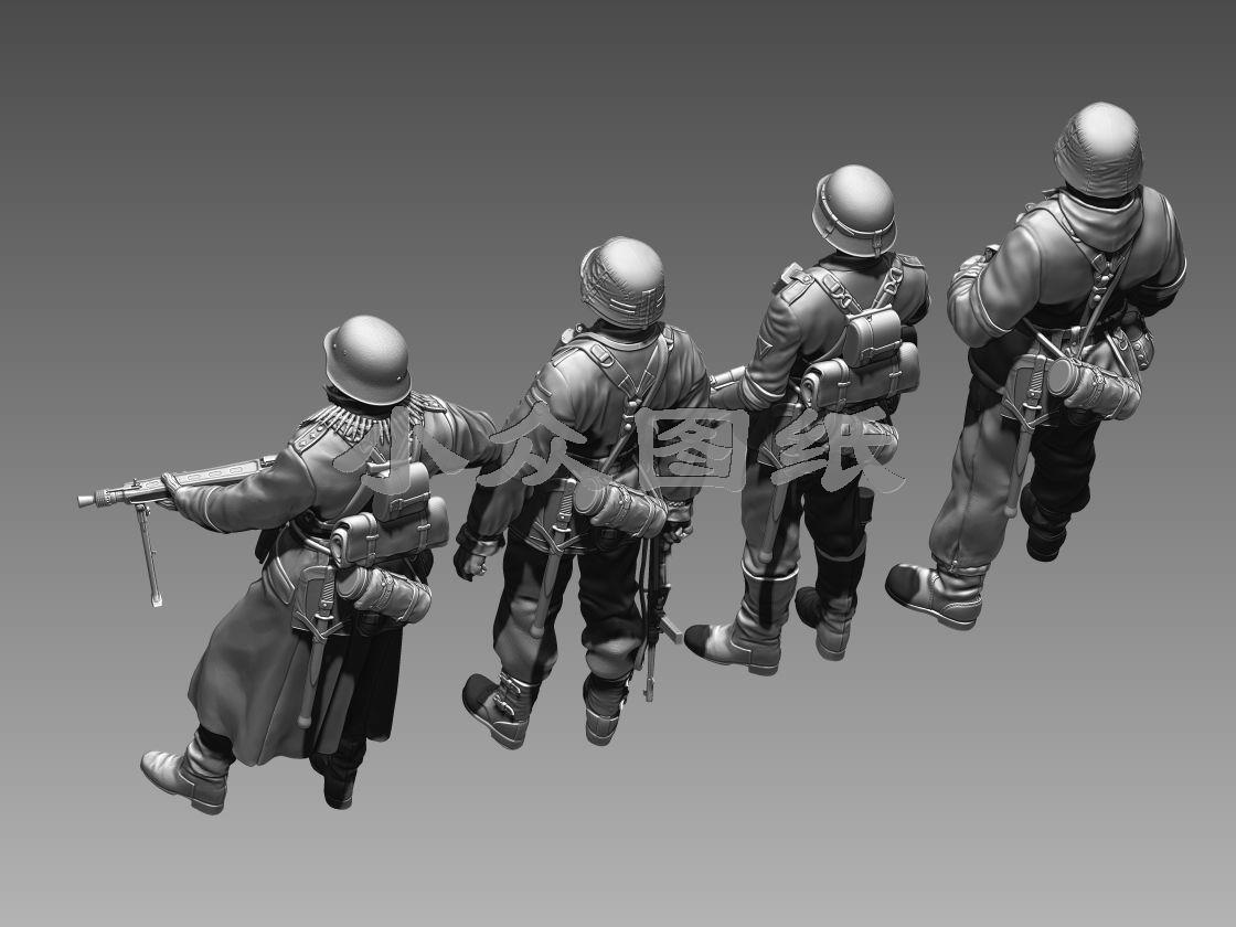 S00008 World War II German four soldiers 3D printing model stl handled high - precision material files