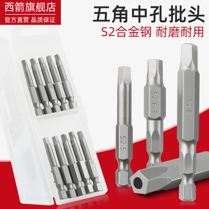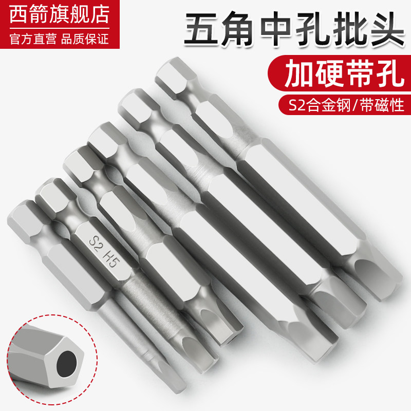 Strong magnetic pentagonal hole electric batch head pneumatic screwdriver head bike batch nozzle pneumatic screwdriver screwdriver head