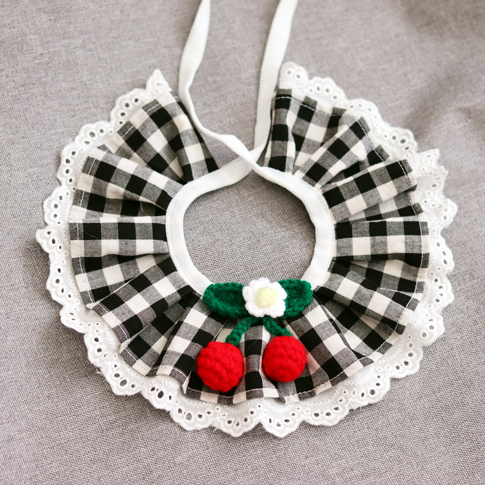 Pet plaid scarf cat strawberry cherry collar princess lace dog saliva towel concave shape photo fairy