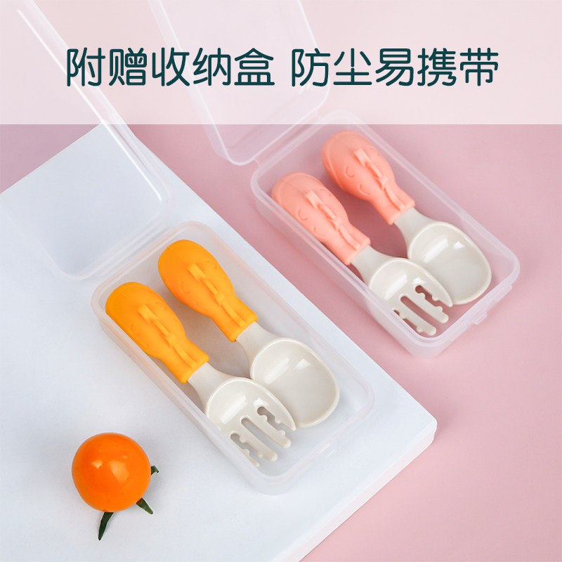 Baby spoon learning to eat training short handle silicone fork spoon one-year-old baby children's tableware set Learn to eat non-food spoon